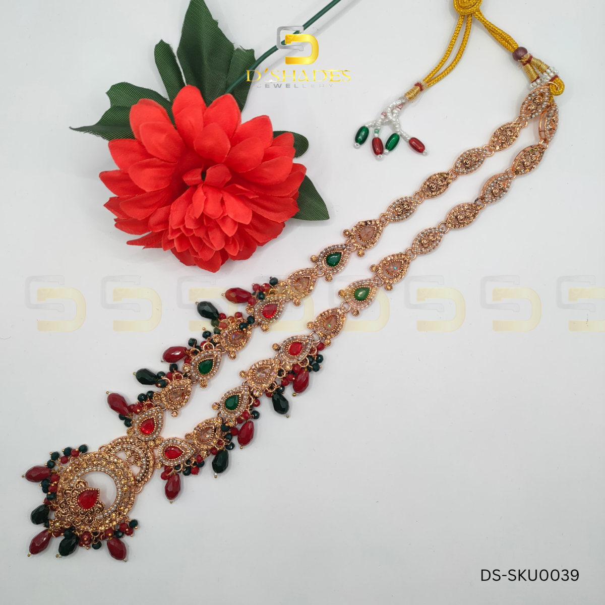The Burro’s-tail Long Malla / Rani Haar from D’Shades Jewellery showcases elegant designs that drape beautifully, adding a sophisticated touch to any outfit. Perfect for special occasions, this stunning piece will make you feel truly special!