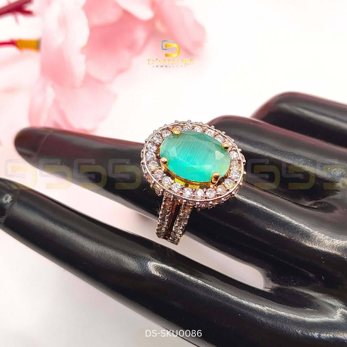 Designer’s Ocean Blue Ring blend timeless tradition with modern luxury. Featuring a bold gemstone centerpiece surrounded by shimmering micro stones, these rings exude regal charm and contemporary elegance—perfect for festive occasions or statement styling.