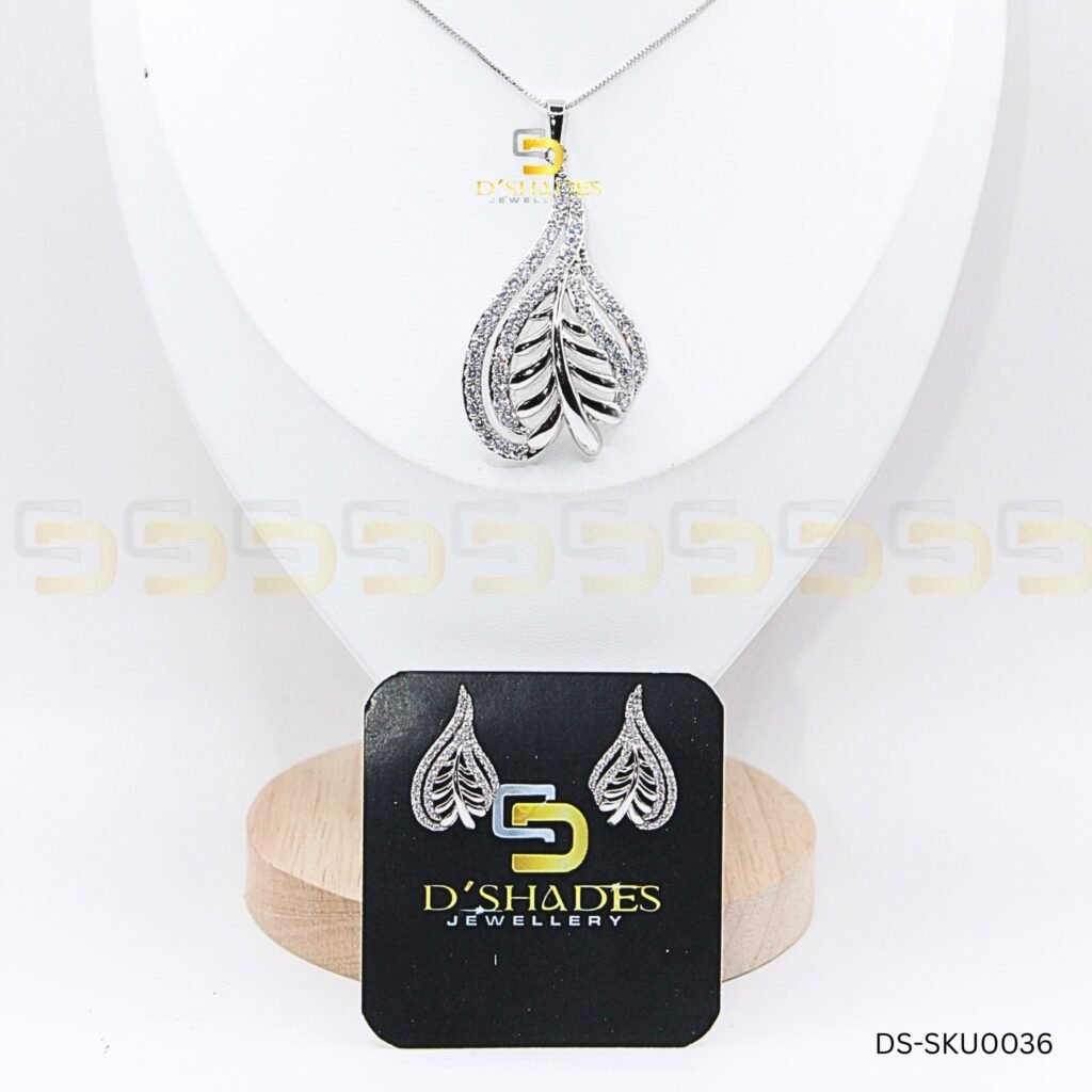 Diamond Loop Pendant Set is a timeless blend of elegance and sophistication. This exquisite Zircon set is adorned with Korean Diamond stones, offering a radiant sparkle and luxurious appeal. The beautifully crafted pendant, paired with matching earrings, adds a touch of grace and charm to any outfit, making it a perfect choice for both formal and casual occasions.