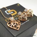 Romantic and radiant, this rose gold-toned set features a heart-shaped pendant and matching studs adorned with micro zircon stones at the center — a timeless symbol of love with a modern sparkle.
