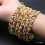 Golden Majesty Bangles – Exquisitely crafted gold bangles featuring intricate detailing and shimmering stone embellishments, perfect for adding a touch of royal elegance to any occasion.