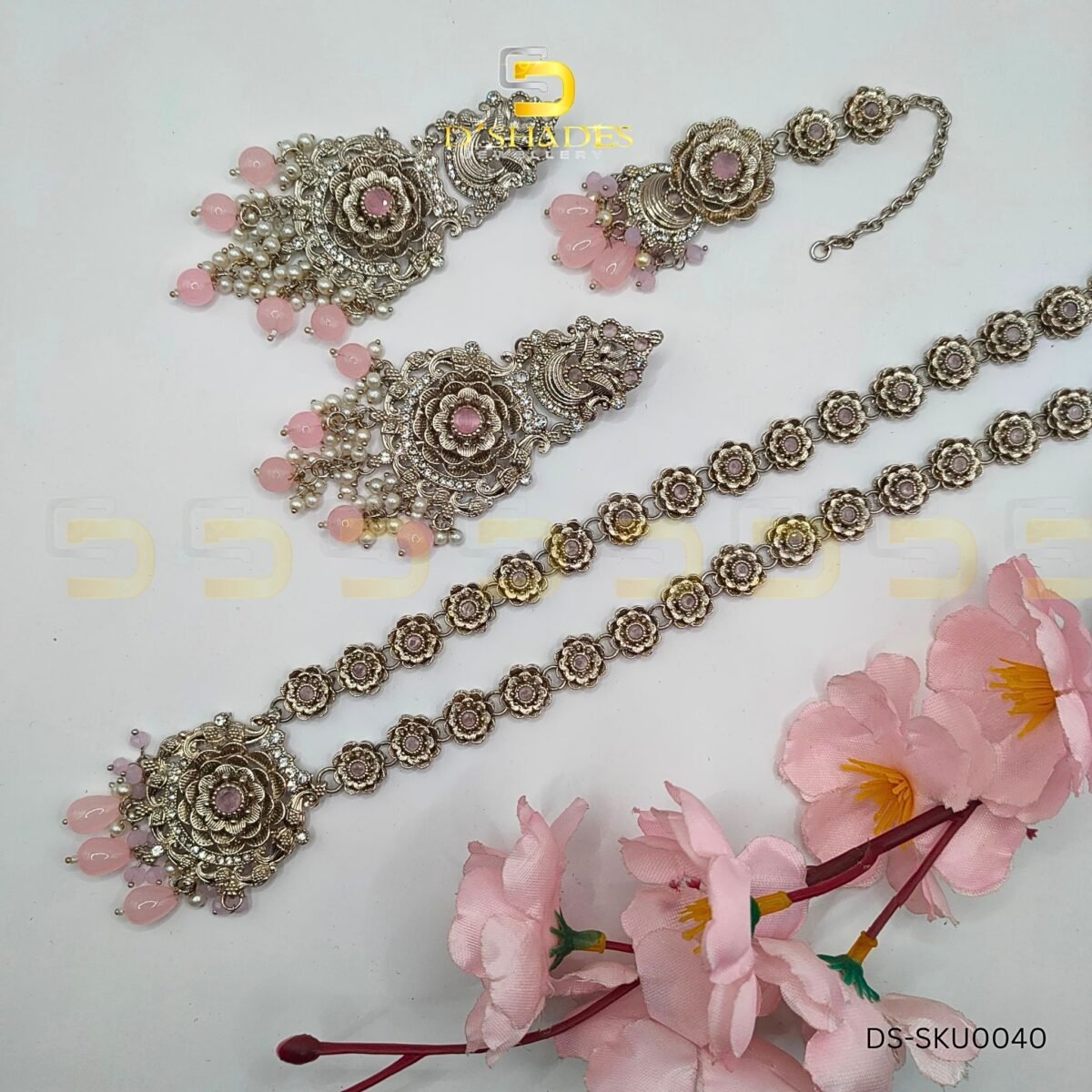 A symbol of royal elegance, the Raajwari Mala Set features layered strands of intricately designed beads and traditional motifs, echoing the grandeur of royal courts. Perfect for weddings and festive occasions, this set adds a majestic charm to any ensemble.
