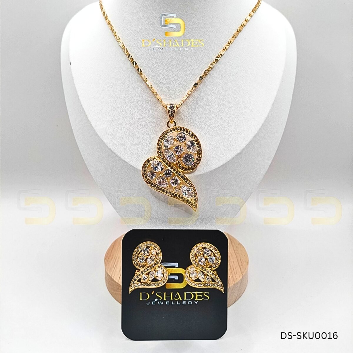 The Prisma Luxe Pendant Set shines with celestial charm, featuring a unique design adorned with premium crystal stones. Elegant and eye-catching, it adds a touch of starlit brilliance to both everyday and special occasion looks.