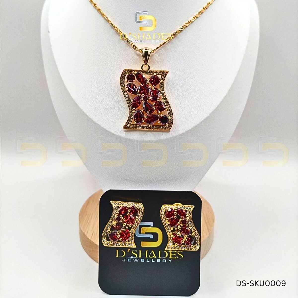 The Scarlet Verse Pendant Set blends timeless charm with poetic elegance. Featuring deep maroon stones in a classic, kitab-inspired design, this set adds a touch of vintage romance to any look — perfect for both special occasions and graceful everyday wear.