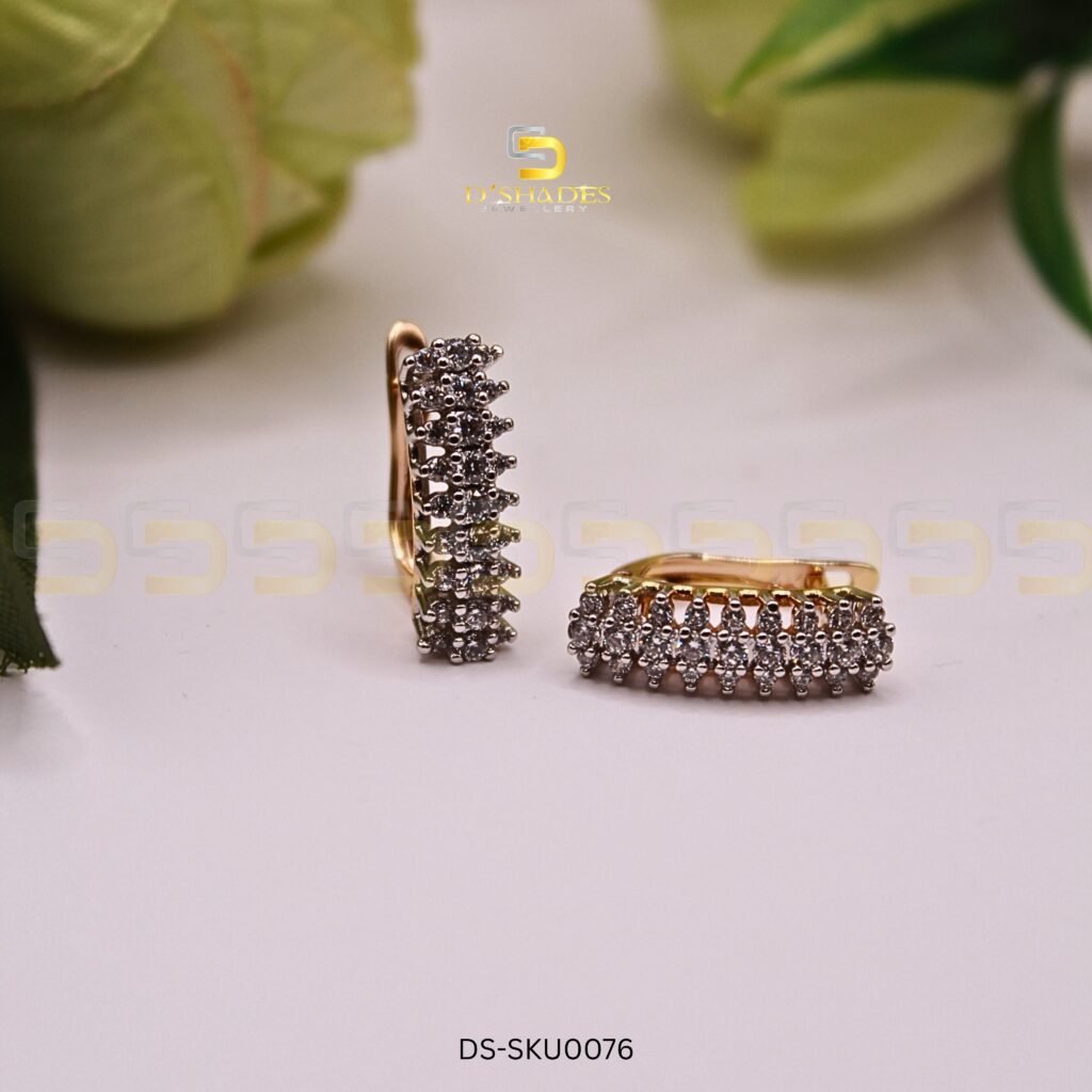 Vyom Earrings embody elegance and sophistication with their luxurious design. Featuring a dazzling arrangement of American-cut diamond stones,